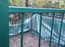 Далее мы закрыли соседние участки полиэтиленом и приступили непосредственно к грунтовке и окраске ограды.