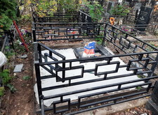 Приехав на участок вновь, мы принялись за установку ограждения, предварительно прополов место захоронения и демонтировав старые памятник с цветником.