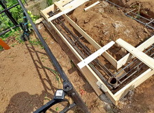 Сваи аккуратно подрезаем и выставляем по уровню.