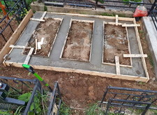 Укрываем внутреннюю зону участка геотекстилем и приносим три массивные прямоугольные плиты, которые в дальнейшем послужат наземным покрытием могилы.